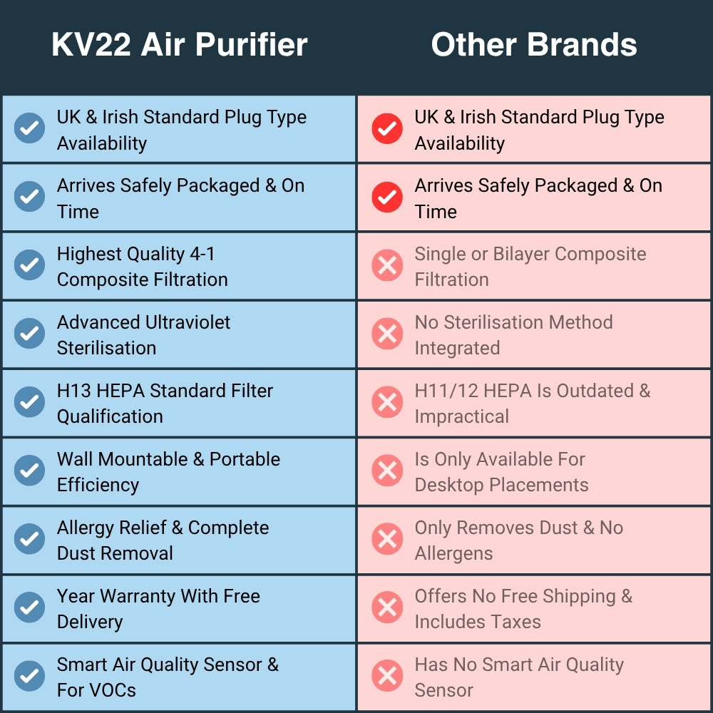 The KV22 guarantees an easy to set up air purifier that can be placed wherever you need it. Contact support if you need help.