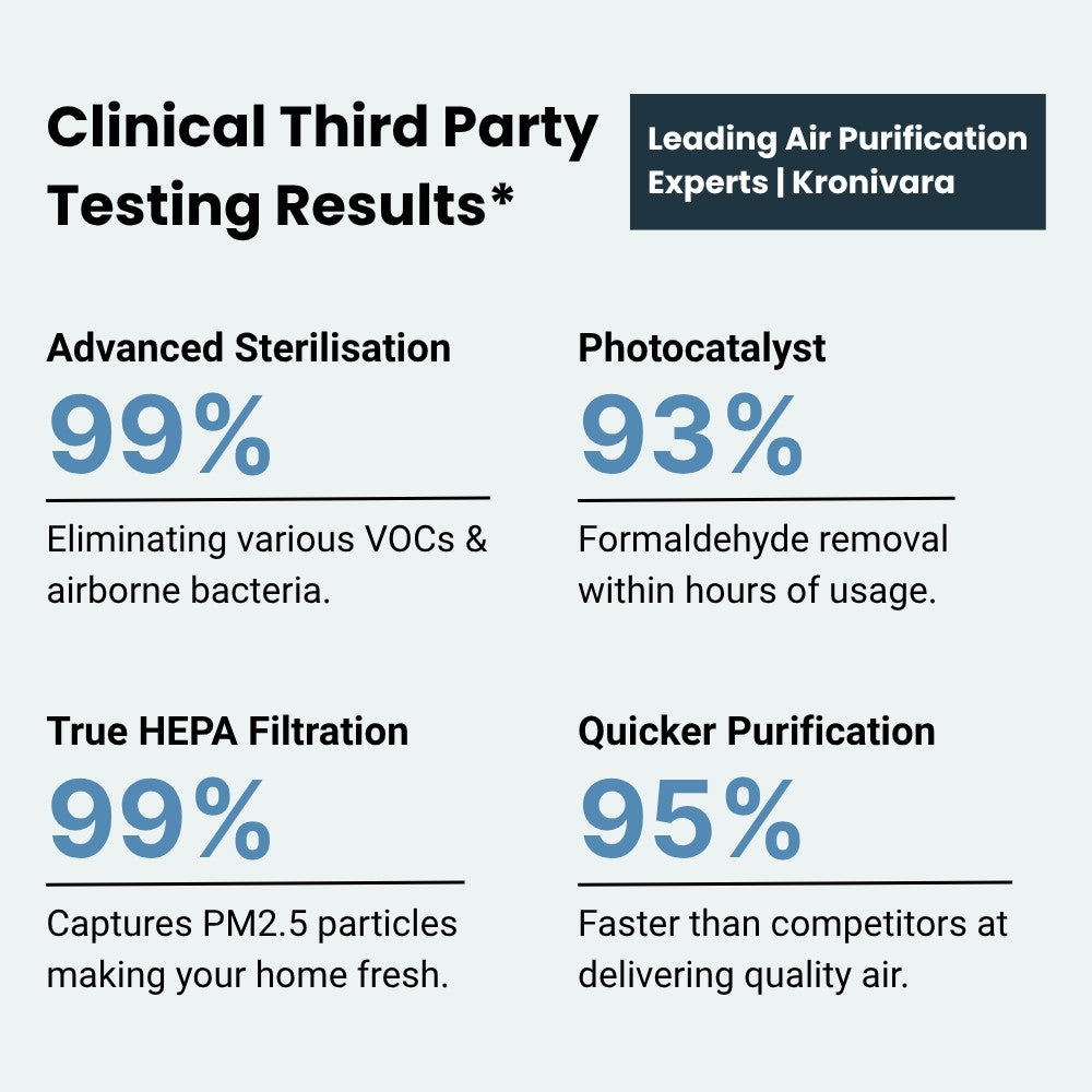 Kronivara are the leading air purification experts. Our expertise guarantees true HEPA filtration with our air purification models. Ensuring you breathe better, everyday.