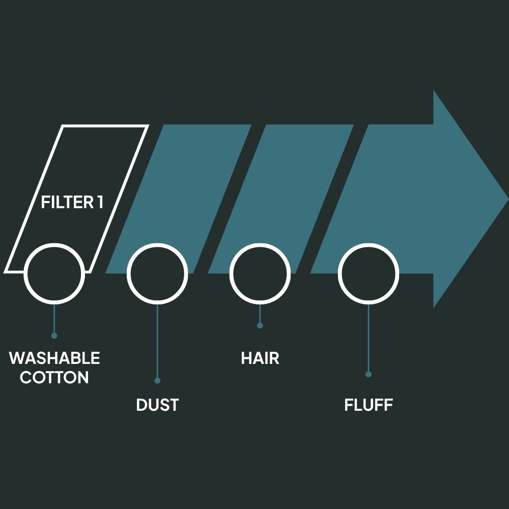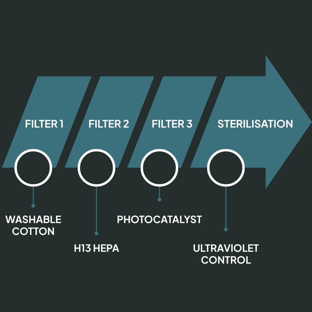The composite filter and sterilisation methods ensure that it can handle various hairs, dust and odours.